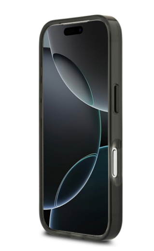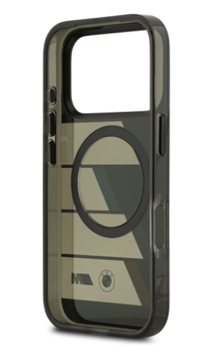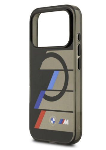 The case offers full MagSafe compatibility, effective impact protection, and a slim profile that doesn't add bulk to the device. The black frame and buttons complete the design, creating a cohesive, dynamic look typical of the BMW M series.