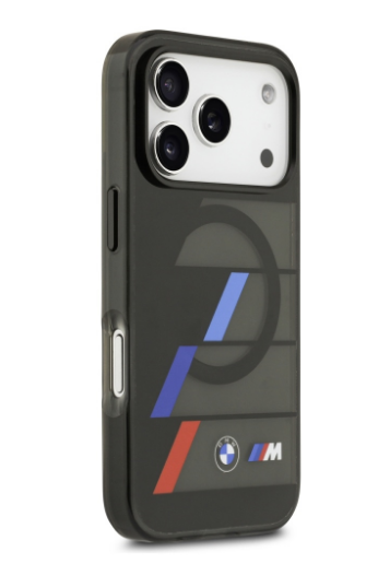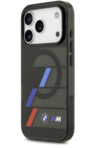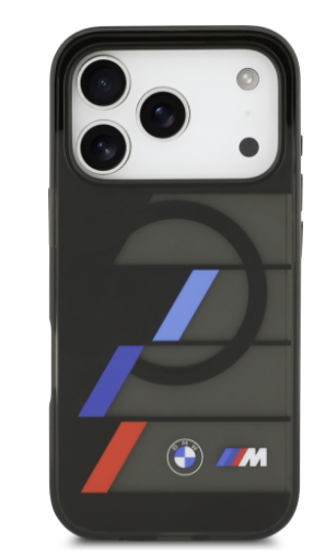 The BMW M IML Metal Buttons Tricolor Lines MagSafe case combines sporty style with modern minimalism, inspired by the BMW M line.