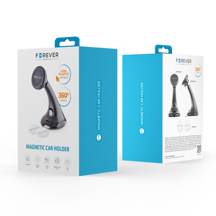 Forever MH-100 magnetic car mount for phones, suitable for every smartphone. Allows convenient placement of the device within the driver’s sight and reach. Durable, easy to use, and equipped with a strong suction cup that securely attaches the product to the windshield. Mounting of the holder is quick and easy. Simply place the holder on the windshield, press the suction cup, and lock the holder with one click. The holder can be placed in any convenient location on the windshield.