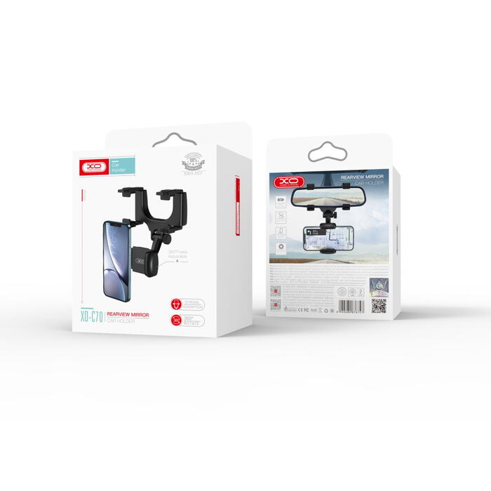 XO C70 is a car holder in the version to be mounted on the rear view mirror in the car. It allows for convenient location of the device within the driver's sight.