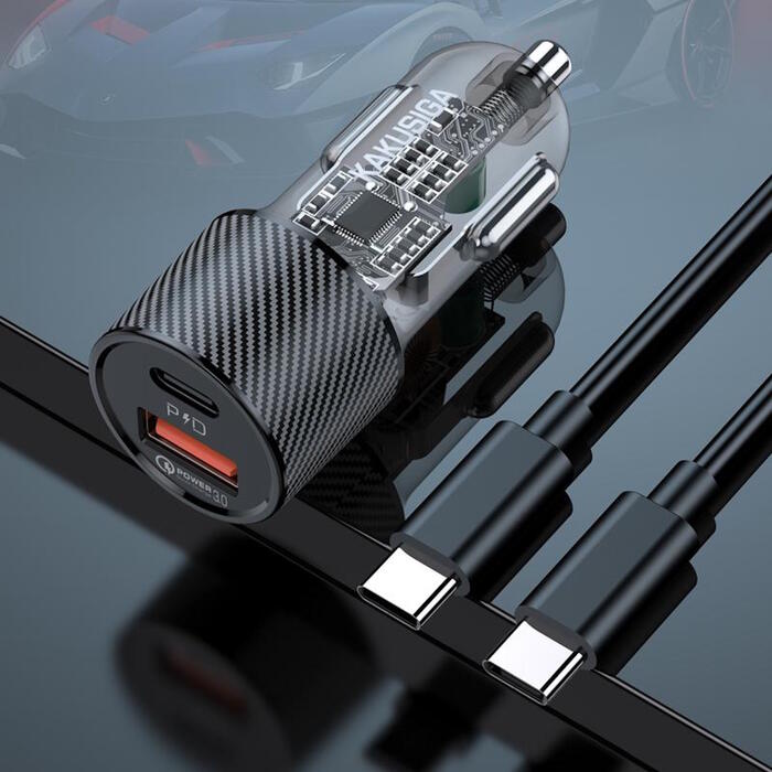 iKaku KSC-856 PD30W+QC3.0 Dual Port USB + Type-C car charger with cable Type-C to Type-C