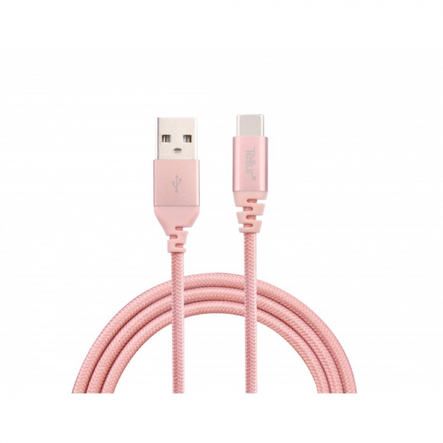 Tellur Data cable, USB to Type-C, made with Kevlar, 3A, 1m rose gold