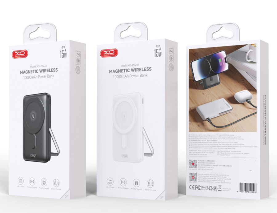 Introducing the XO 10000mAh magnetic power bank, your ultimate companion for reliable on-the-go charging. Crafted with durable ABS+PC material, it's designed to withstand daily wear and tear. Featuring a convenient light display, you can easily monitor the battery status. The USB-C input supports rapid charging with up to 18W input power, while the USB-C output delivers efficient charging with up to 30W output power. Additionally, enjoy the flexibility of wireless charging up to 15W. Compact and lightweigh with small dimensions it's perfect for travel and everyday use. Supported protocols include PD3.0, AFC, FCP, PPS, QC4.0, QC3.0, and QC2.0, ensuring compatibility with a wide range of devices.