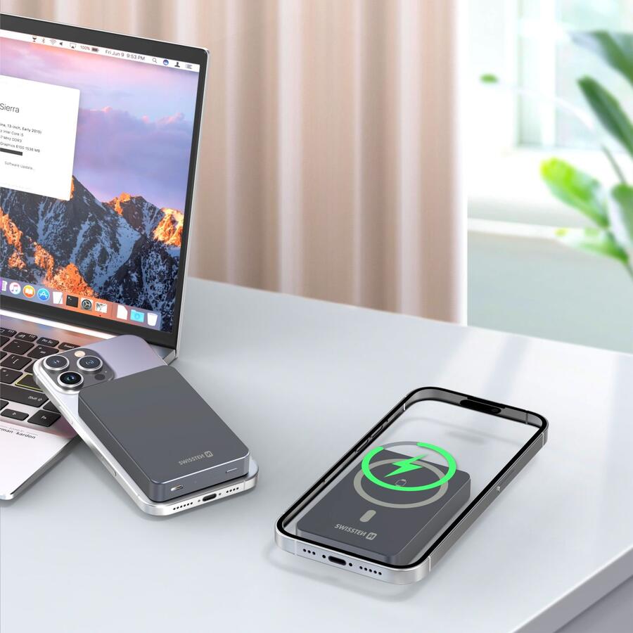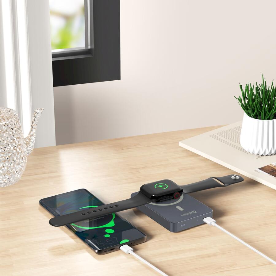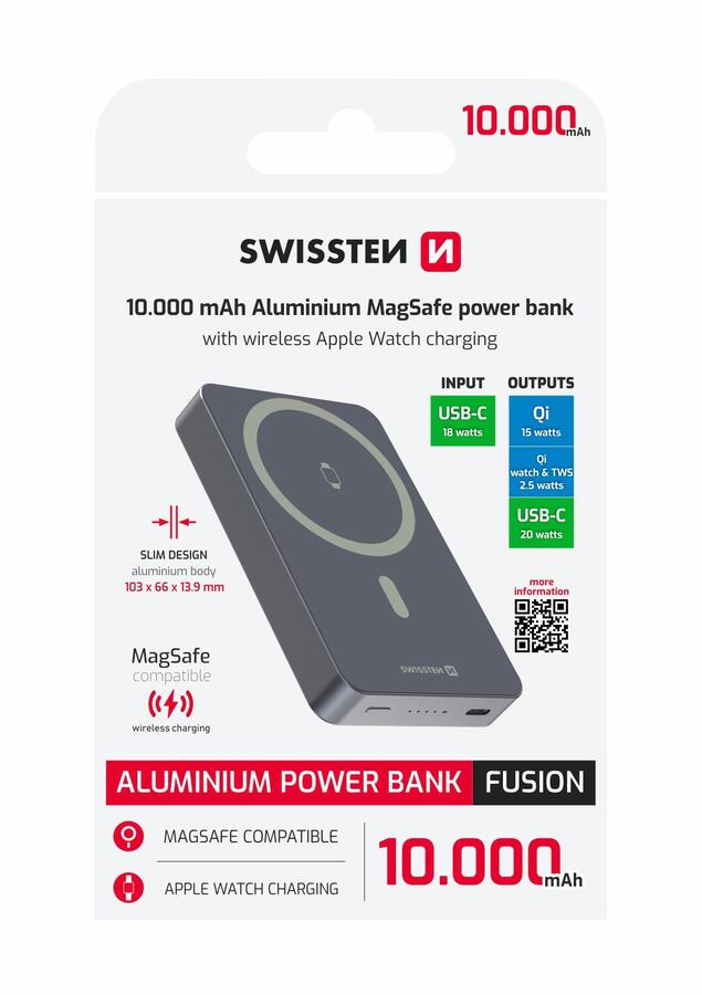 SWISSTEN FUSION Power Bank 10,000 mAh | Aluminium Premium External Battery with MagSafe and Apple Watch Charger