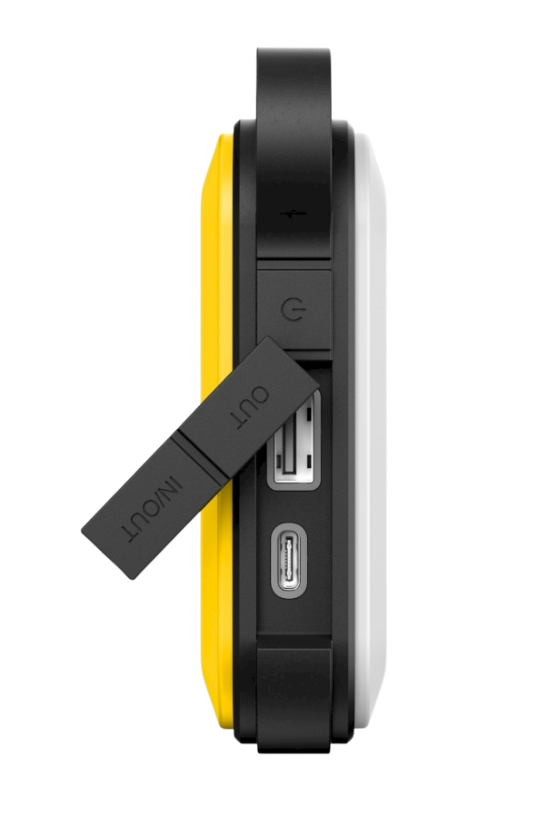 Equipped with a USB-A and USB-C port – both neatly hidden in the body of the power bank and sealed according to the IP67 standard.