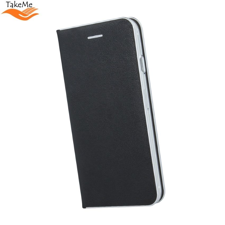 TakeMe Metal-Edge Metāla apmalu un spīdīgas eko ādas magnētiskā fiksācijas sāniski atverams maks - ir augstas kvalitātes, sāniski atverami maki ar papildus metāla sānu apmali, kas pasargā iekārtu un rada elegantu dizainu, kā arī ērtu silikona ietvaru, kurā iestiprinās telefons. TakeMe Metal-Edge īpaši mīksts eko ādas magnētiskā fiksācijas sāniski atverams maks - pateicoties magnētam, kurš iešūts maka priekšējā daļā, nav nepieciešami nekādi virspusēji klipši.