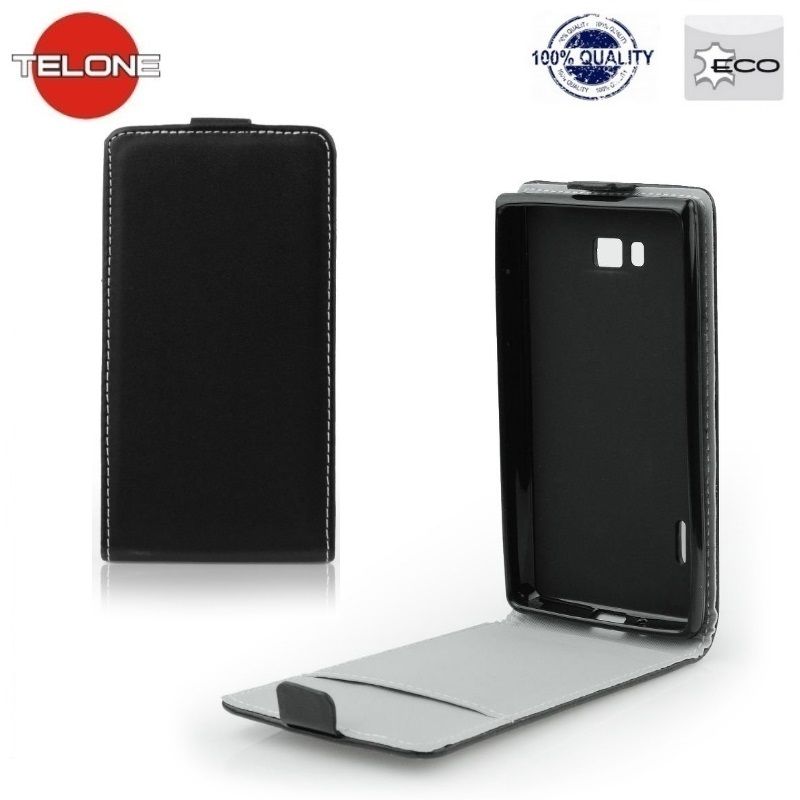 Telone Flexi Slim Flip Huawei Ascend G610 vertikāli atverams silikona ietvarā Melns