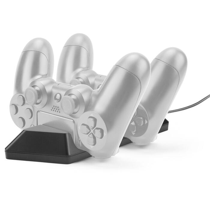 Eleganta dizaina uzlādes un uzglabāšanas pamatne 2 ar PS4® saderīgiem kontrolleriem.