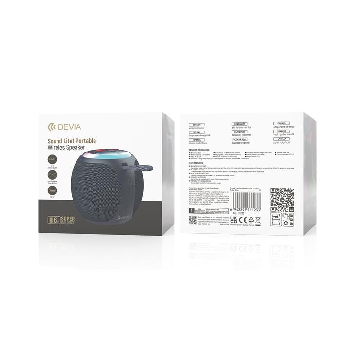 The portable Bluetooth speaker Devia EM505 Sound Lite1 delivers powerful sound in a compact size, perfect for travel and outings.
