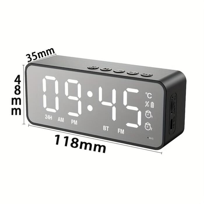 The Setty desk clock with alarm and Bluetooth speaker is a modern combination of everyday functionality and minimalist design. The large, clear LED display makes the time easily visible. The device also serves as a wireless speaker – once paired with your phone, you can listen to your favorite music, podcasts, etc. Additionally, the clock shows the temperature, allowing you to quickly check the conditions in the room. It is a compact, aesthetic, and practical addition to your desk, bedroom, or living room, combining several useful functions in one elegant case.
