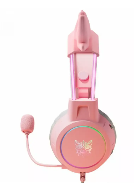 The ONIKUMA X15Pro Gaming headset in pink with deer horns offers impressive sound quality, an adjustable headband and comfortable ear pads. Designed for gamers, they provide excellent noise isolation and a built-in microphone for clear communication. The stylish design and lively color make them the perfect choice for gaming sessions and everyday use.