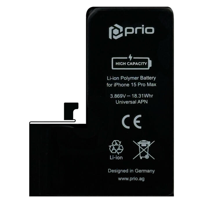 prio High-Capacity Battery for iPhone 15 Pro Max (4730 mAh) - Universal APN -