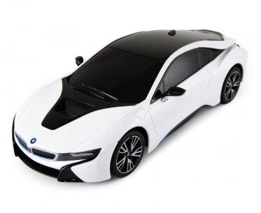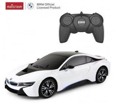 The RASTAR R/C 1:18 BMW i8 is a detailed, high-performance remote control car perfect for hobbyists and kids alike. Modeled after the BMW i8, it features realistic body styling, LED headlights, and smooth maneuverability. The car is equipped with a 2.4 GHz radio system for precise control, forward, backward, left, and right steering. Its rechargeable battery allows fun driving sessions indoors or outdoors. Lightweight and durable, this 1:18 scale model is an ideal gift for racing enthusiasts.