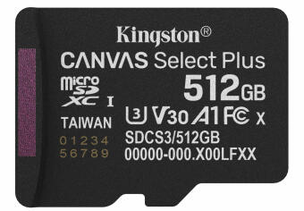 Atmiņas karte Kingston MicroSDXC 512GB Canvas Select Plus bez adaptera