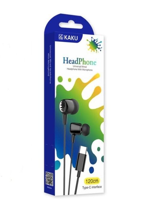 iKAKU KSC-291 Universal Lightweight HiFi In-Ear Headphones Type-C with Microphone 1.2m Black