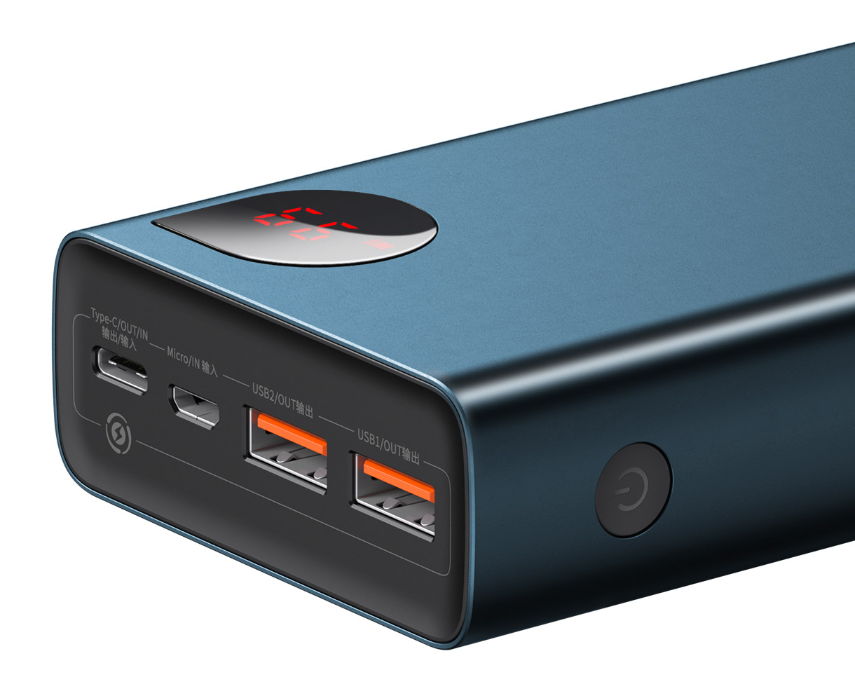 Thanks to the product from Baseus you will quickly charge your laptop or phone. The device supports 65W Power Delivery fast charging protocol, so your MacBook battery will be fully charged in just 2 hours. The powerbank is equipped with two USB output ports and USB-C and micro USB output/input ports.