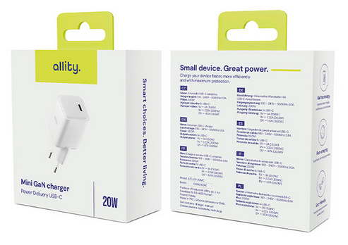 Design: Compact, utilizing GaN (Gallium Nitride) technology