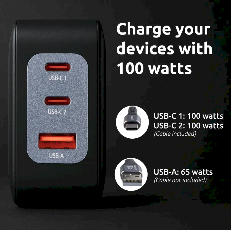 The kit includes an adapter with two USB-C ports and one USB-A port, allowing you to simultaneously charge multiple devices without sacrificing speed. The adapter comes with a 2m C520C cable with an E-Marker chip rated for up to 240W, making it a versatile charging and data transfer solution.