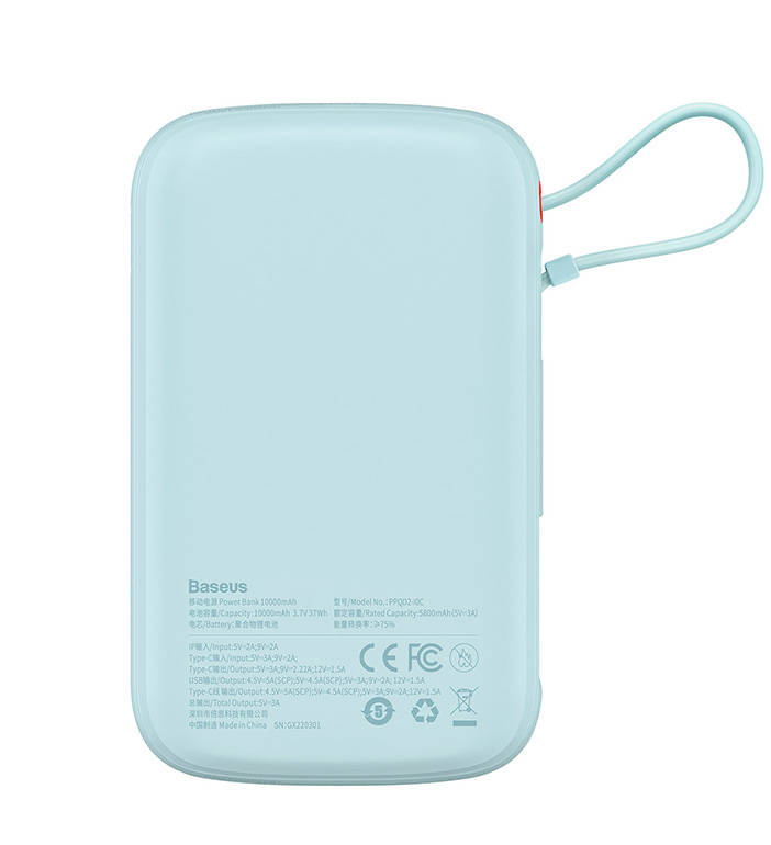 Bet on a capacious powerbank by Baseus and charge your devices quickly and safely. Baseus Qpow Pro has a built-in USB-C cable and 2 output ports, it also supports multiple fast charging protocols. It allows you to renew the energy of 3 devices at the same time, its output power reaches 22.5 watts and its capacity is 10,000 mAh. Handy and lightweight, it is no problem to transport, and stands out for its wide compatibility and multi-level protection.