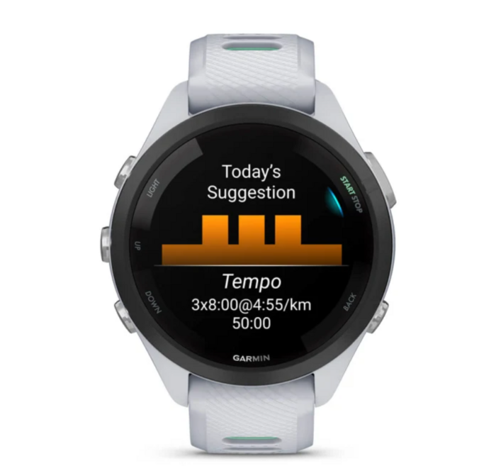 Visaptveroša veselības uzraudzība: Ietver tādas funkcijas kā sirdsdarbības ātruma uzraudzība no plaukstas locītavas, miega izsekošana, stresa izsekošana un Body Battery™ enerģijas uzraudzība.