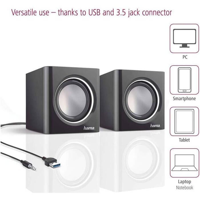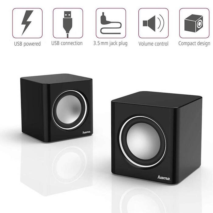 Bring your laptop’s audio to life with the Hama Sonic Mobil 185 — a sleek, cube-shaped stereo speaker set designed for simplicity, portability, and surprisingly rich sound. Whether you’re streaming music, watching videos, or joining video calls, these USB-powered speakers deliver clean stereo output in a compact, modern design that fits any desk.