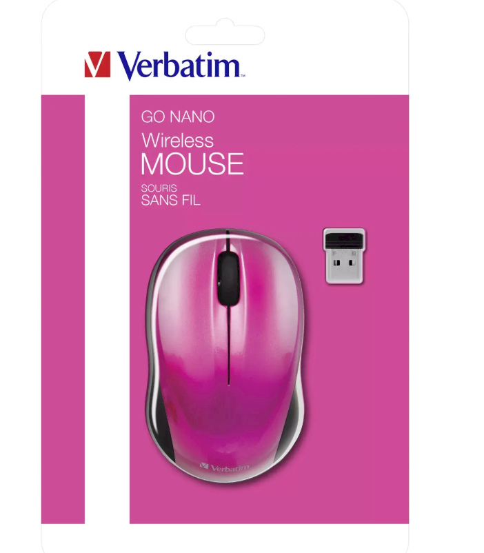 The Verbatim Go Nano Hot Pink is a compact wireless mouse with a 1600 dpi optical sensor designed for comfortable everyday computing at home, in the office, or on the go. It connects via a 2.4 GHz RF USB‑Nano receiver for stable wireless performance without cables. The bright hot pink color adds style to any workspace.