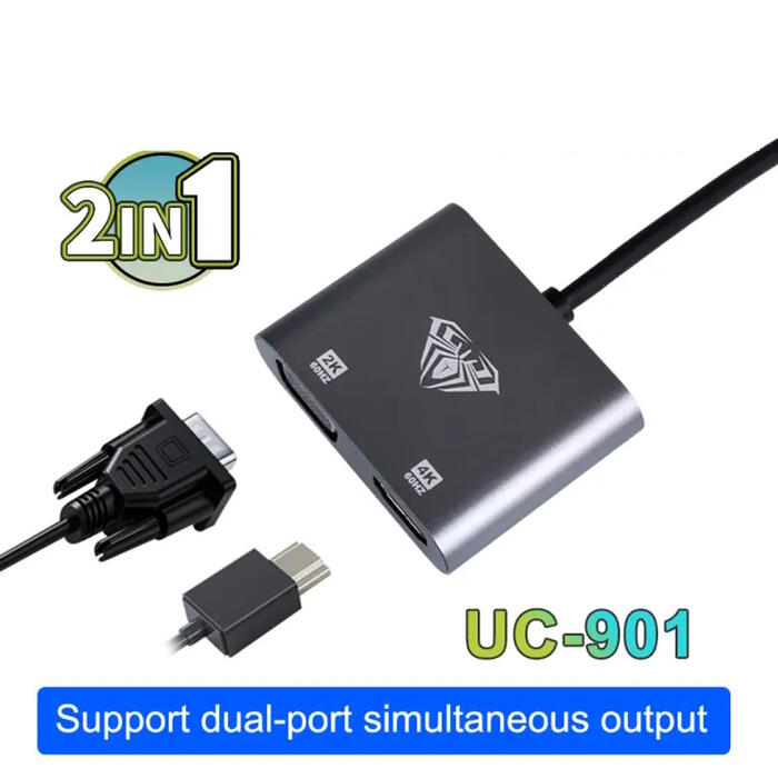 Aula UC-901 2in1 Video Adapter - Converter from USB-C to Hdmi 4K 30Hz / VGA monitor