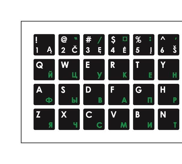 Mocco Keyboard Sticks LT / ENG / RU With Laminated Waterproof Level White / Green