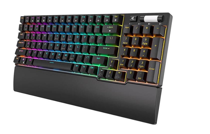 What sets the Royal Kludge keyboard apart is its well-thought-out design. It was created with durable materials, so it shows great durability and resistance. What's more, its multilayer structure allows it to reduce noise, so it will work quietly and not disturb other people in the room. What's more, it allows you to change switches freely. You will find a magnetic pad included, which will allow you to support your wrists comfortably.