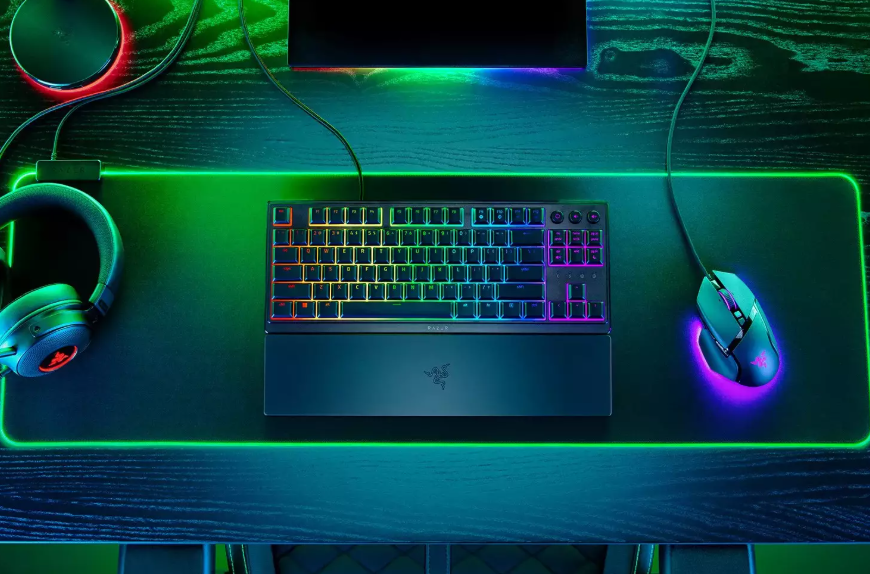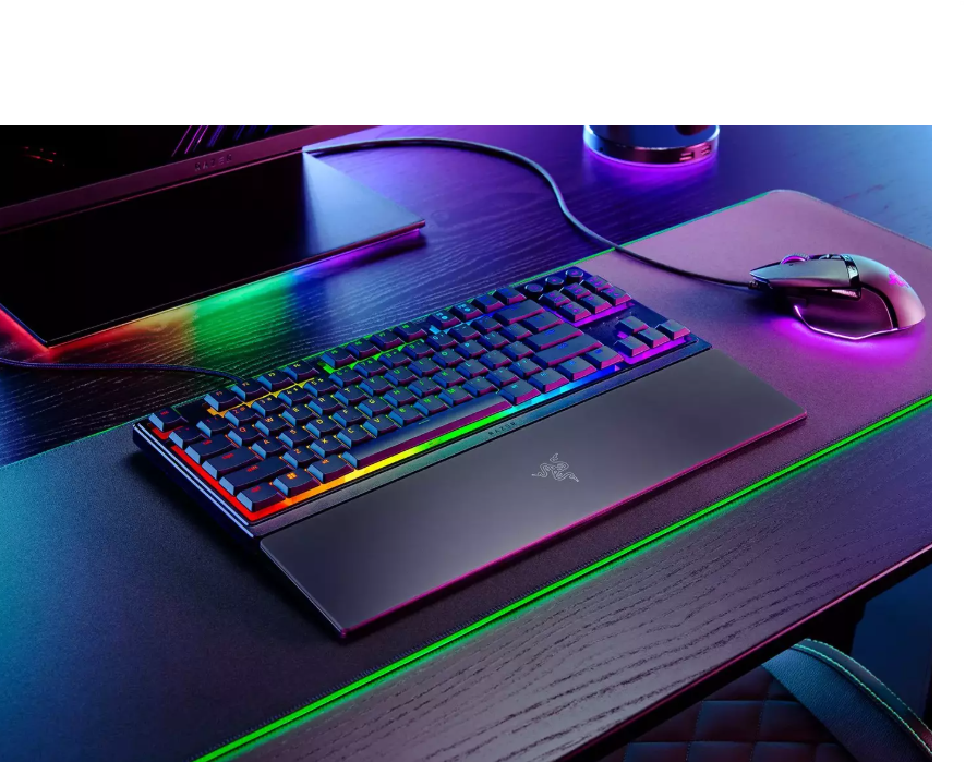 The Razer Ornata V3 is a mecha-membrane mechanical keyboard designed for gamers who value comfort, precision, and durability. It features 10-zone Razer Chroma™ RGB lighting, UV-coated ABS keycaps, media keys, and a magnetic wrist rest.