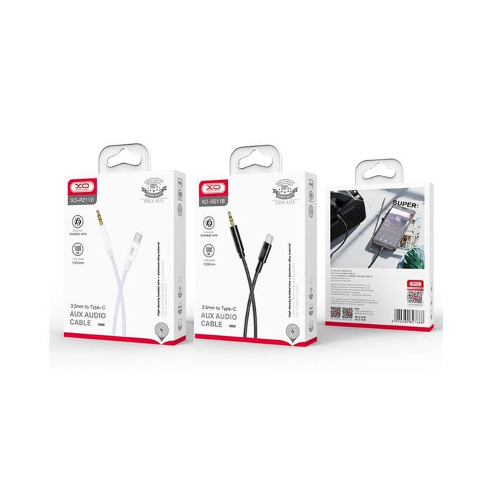 XO NB-R211B is a universal audio cable for devices with 3.5mm jack sockets. It will allow you to connect, for example, a smartphone with a USB-C socket with a car radio or other device equipped with a 3.5mm jack socket.