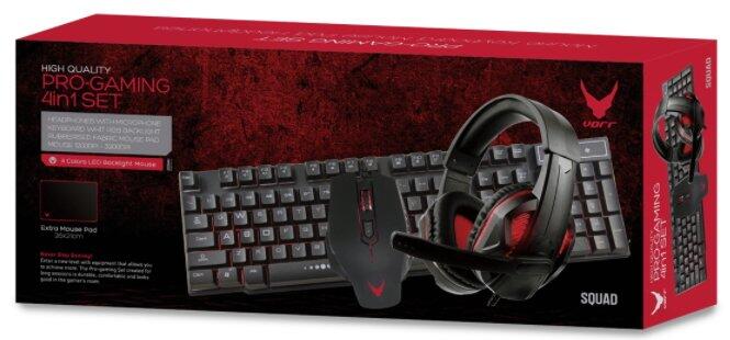 VARR SQUAD VG4IN1SET01 is a set created for demanding users. The special coating of the mouse and keyboard allows a firm grip and prevents sweating of the hands even during the most demanding games. The mouse pad included in the kit increases the comfort of use regardless of the type of surface. The headset are distinguished by high sound quality and a sensitive microphone that allow you to fully devote yourself to electronic entertainment.