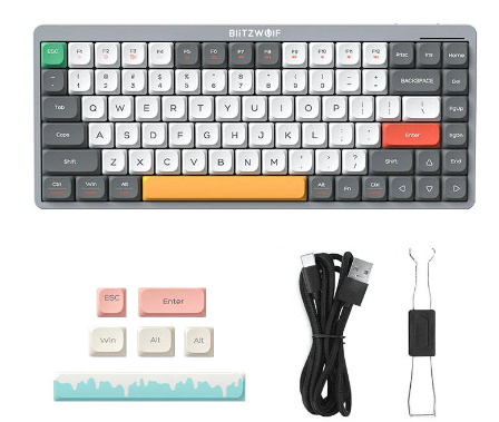 The Blitzwolf BW-Mini75 keyboard is equipped with high-quality PBT keycaps, ensuring durability and comfortable use. Resistance to wear and shine ensures that the keyboard will look new for a long time.