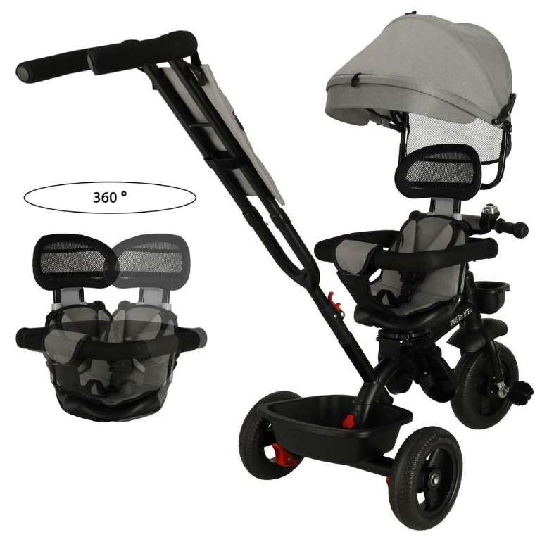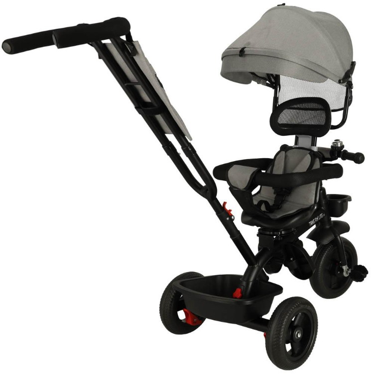 The tricycle has two baskets-a smaller one at the front and a larger one at the rear. Thanks to them, you can easily take a bottle of water and other necessary things with you, without carrying a bag or backpack!