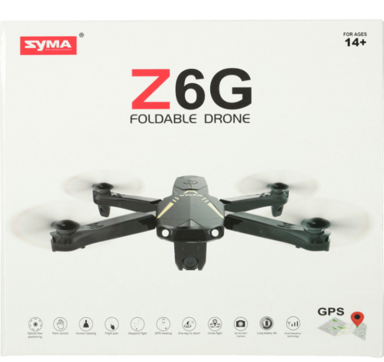 The Z6G drone is a model of the famous SYMA brand. It is equipped with two cameras - front (4K) and bottom (720p). It's lightweight and compact, and the ability to fold the handles means it takes up little space, so you can take it with you wherever you go. It has features such as one-button automatic takeoff and landing, the ability to take photos and record videos, gesture control, and automatic return when the battery is low. There is a phone app that makes it easy to control the drone. The kit includes a controller to which you can connect your phone.