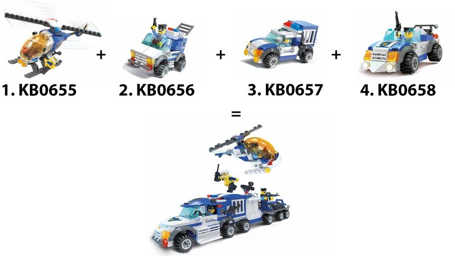 BLOCKI MyPolice from the 2in1 series is a great collection of small set. Combining several small sets, they form a bigger, more creative bigger set! MyPolice 2 in 1 BLOCKI consists of two collections, each consisting of 4 small sets.