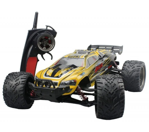Racer Truggy was designed for fast off-road driving and will work on any surface. It allows for full control while riding on hard surfaces, sand, grass and stones. The maximum off-road speed is almost 40 km/h. Fully proportional control is performed by 2.4GHz frequency equipment, which allows you to drive safely in a crowd of other cars.