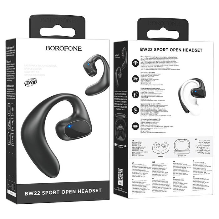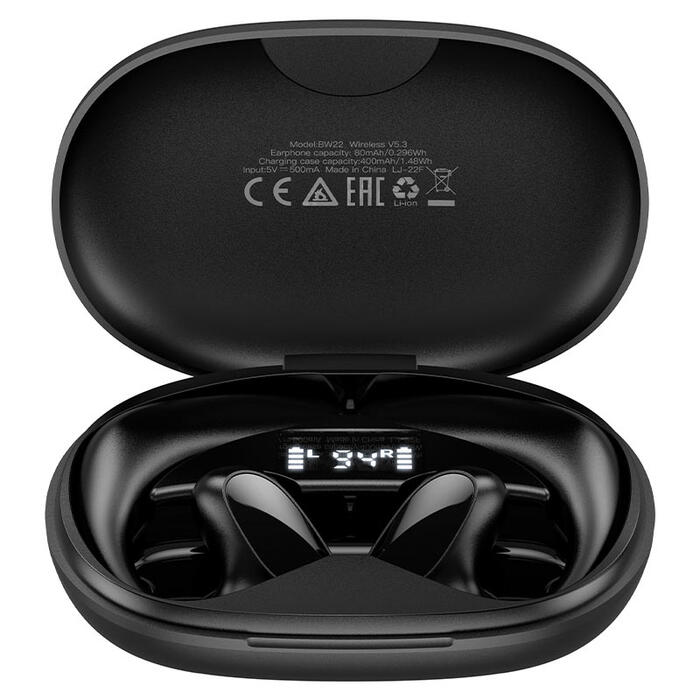 BOROFONE BW22 Dawn air conduction TWS, BT v5.3 earphones, 80mAh single earphone battery for 10 hours of use, 200 hours of standby, 400mAh charging case