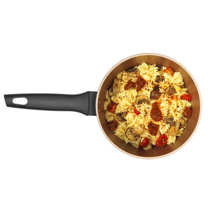 - Pateicoties tā jaunajai un uzlabotajai novatoriskajai tehnoloģijai, šim katliņam ir septiņas reizes izturīgāks pretpiedeguma pārklājums, un tas iederas katrā mājā.