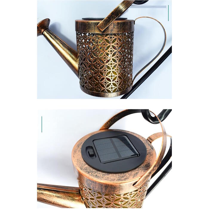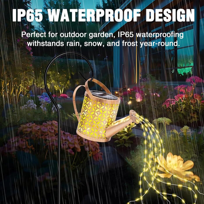 Transform your garden into a magical nighttime retreat with the Elight Solar Water Jug Lamp, featuring a beautifully crafted watering can shape and simulated water stream LED light effect. Designed to hang or stake into your garden, this golden lamp features solar-powered operation, automatic dusk activation, and a cascading warm white light that mimics flowing water. Perfect for patios, flower beds, balconies, or walkways, this decorative lamp blends nature and light for a stunning visual impact.