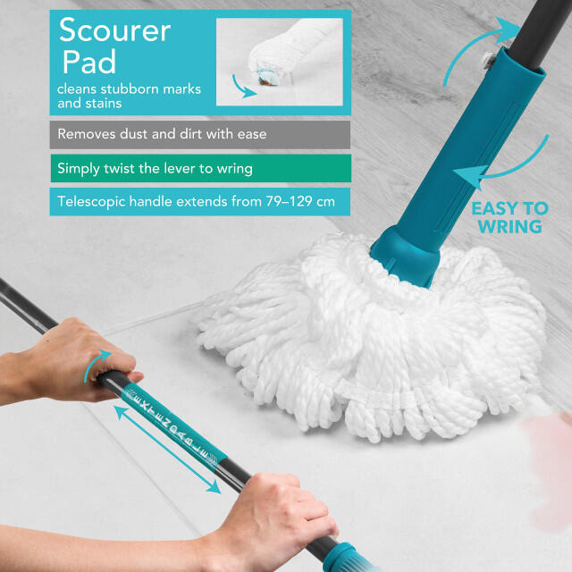 Pateicoties vienkāršam izgriešanas mehānismam, pagriežamā slota ir lieliski piemērota cieto grīdu mazgāšanai un žāvēšanai, lai iegūtu izcilus rezultātus bez švīkām.