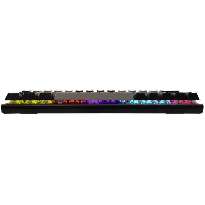 Šī kompaktā, 63 taustiņu tastatūra saglabā oriģinālās iemīļotās funkcijas, tostarp mehāniskos zilos slēdžus un 17 varavīksnes apgaismojuma efektus.