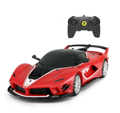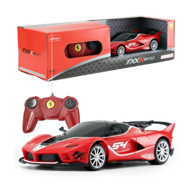 The RASTAR Ferrari FXX K Evo 1:24 is a 1:24 scale remote-controlled model of the Ferrari FXX K Evo racing car. It features a detailed design, opening doors, and working front and rear lights. Suitable for children and collectors.