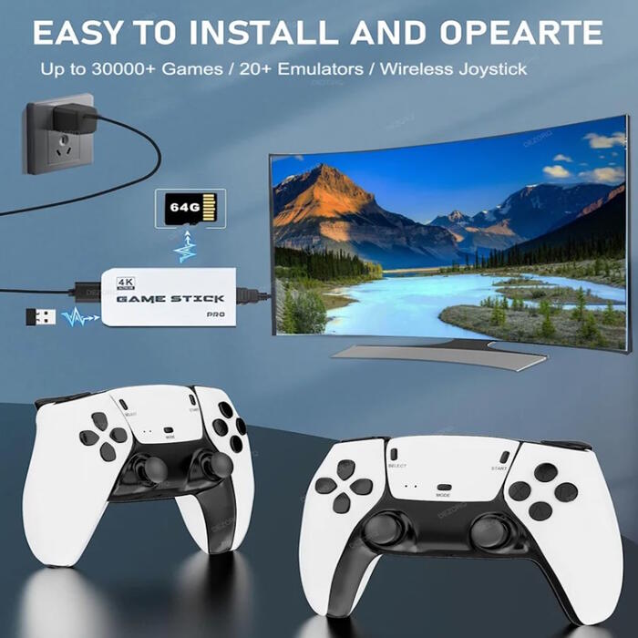 Built in Games: Our Game Stick Console come with 64GB TF card. Built-in game system and more than 20000 Games. Support you to play free retro games.