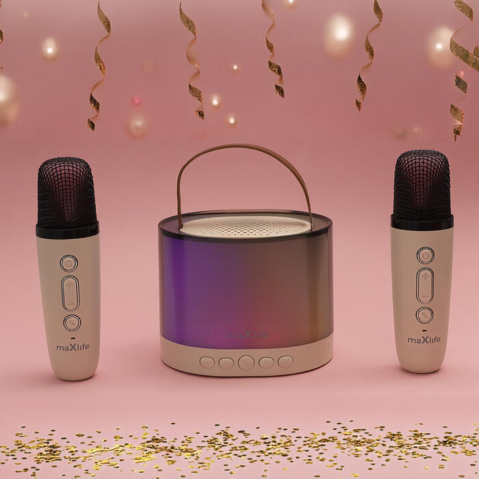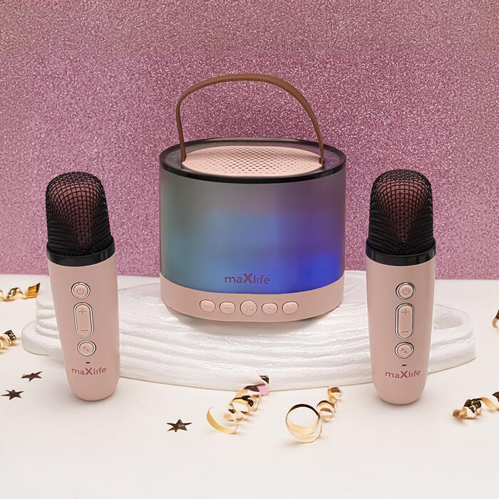 The MXKS-200 Maxlife Bluetooth Karaoke Set is the perfect solution for any party, providing excellent fun and unforgettable musical experiences. With its functionality and mobility, the set is a reliable companion for any event. The 5W speaker delivers deep and clear sound, while the 1500 mAh lithium-polymer battery allows for uninterrupted music playback for about 5 hours. The set is equipped with a 3.5 mm AUX jack and an SD card slot, allowing music playback from various sources. Thanks to the practical handle, the speaker is portable and can be taken anywhere. The set includes two wireless microphones with volume control buttons and 4 voice modulation functions along with an echo function, enabling creative experimentation during karaoke performances. The MXKS-200 Maxlife Bluetooth Karaoke Set is an indispensable companion for any party, guaranteeing excellent fun and unique musical experiences.