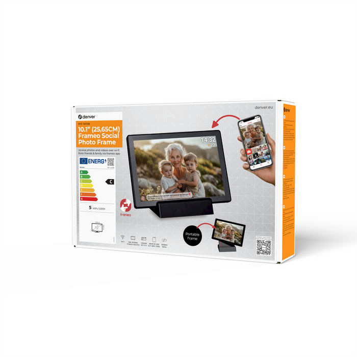 Sūtiet fotoattēlus un videoklipus tieši no viedtālruņa, izmantojot iepriekš instalēto FRAMEO lietotni — ideāli piemērota mirkļu kopīgošanai ar ģimeni un draugiem reāllaikā.