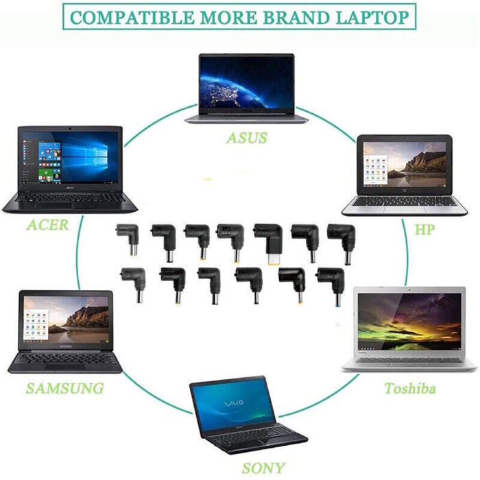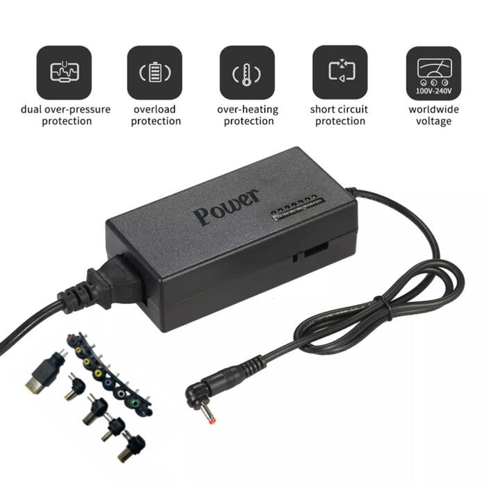 Adjustable Output Voltage -- Worldwide input voltage 110-240V, output voltage DC 12V/ 15V/ 16V/ 18V/ 19V/ 20V/ 24V, maximum power 96W, compatible power adapter for different laptops.