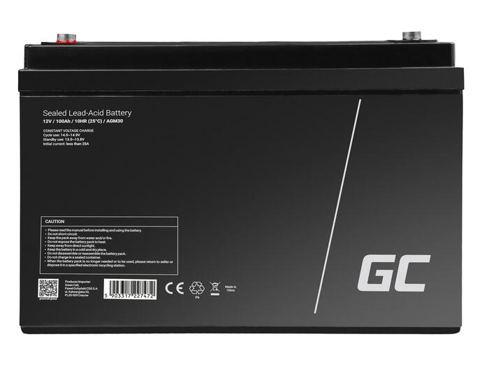 Green Cell AGM VRLA 12V 100Ah maintenance-free battery for camper, photovoltaics, solar panels, boats