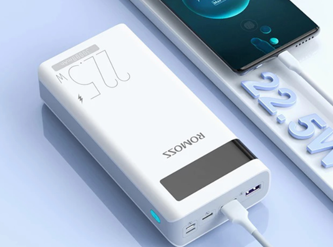 Another advantage of the Romoss powerbank is the LED display. From it you can read the remaining battery level, amperage and voltage values. What's more, the screen will also show a fast charging icon - just take a look.
