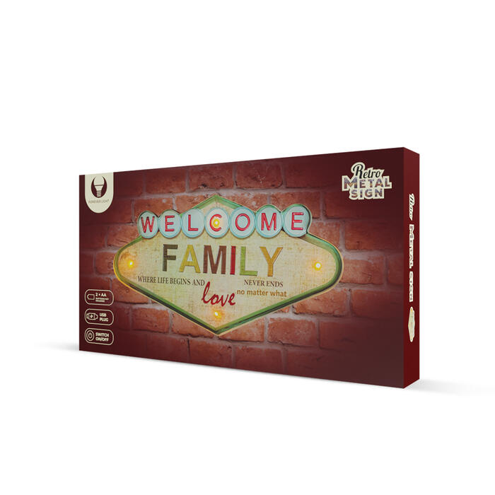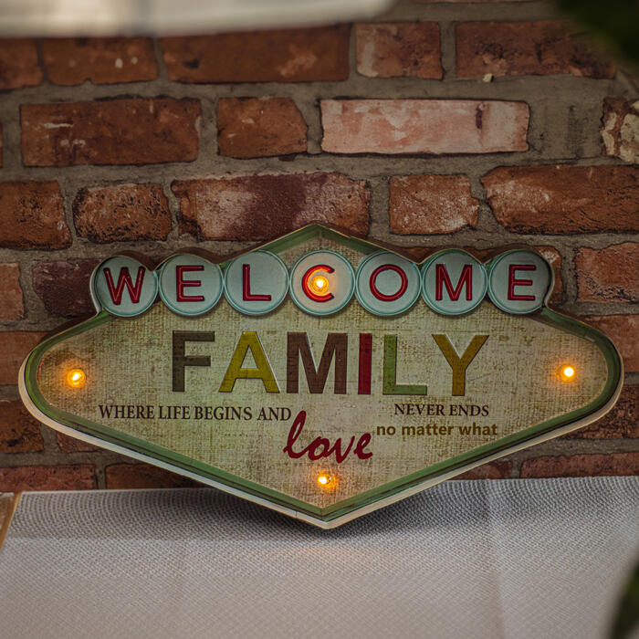 RETRO Metal Sign LED Welcome Family Forever Light